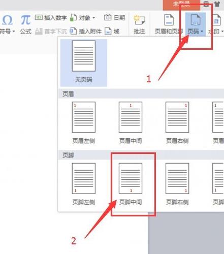 4、此时点击“页码”选项,我们可以看到有很多的选项,大家可根据自己的需求选择合适的即可。小编在这里选择“页脚中间”,如下图所示