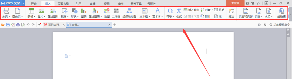 3、点击插入选项,进入其编辑工具区,如图所示: