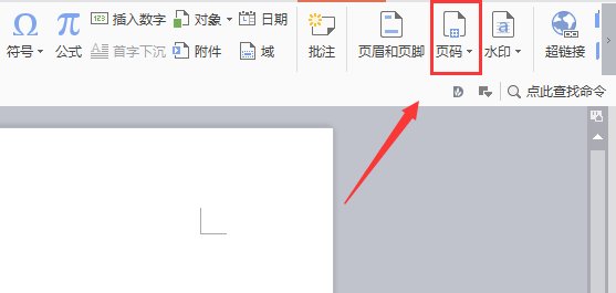 4、在该工具区内找到页码选项,如图所示: