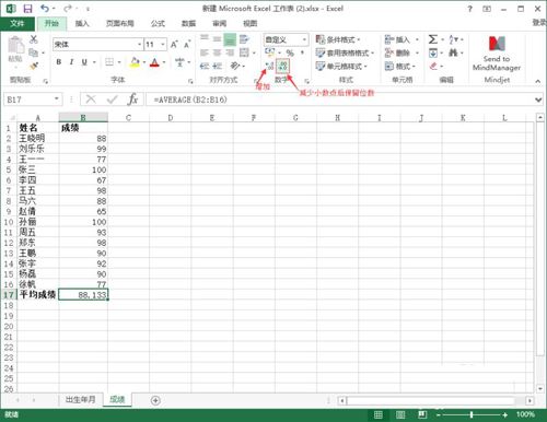 1、直接选择菜单栏中的快捷按钮,增加或者减少小数点后的位数。