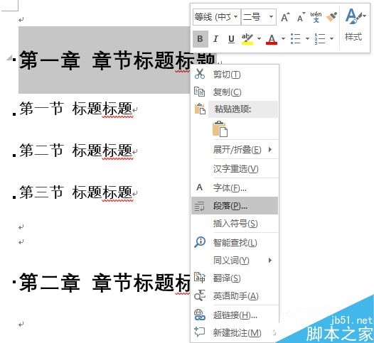 启动Word之后,新建一个文档,当然你也可以打开以前制作好的文档。在文档编辑过程中,选中需要出现在目录中的文字,右击,从右键菜单中选择“段落”。在打开的段落对话框中,为所选文字设置“大纲级别”,根据你文章的实际内容,选择不同的级别即可。
