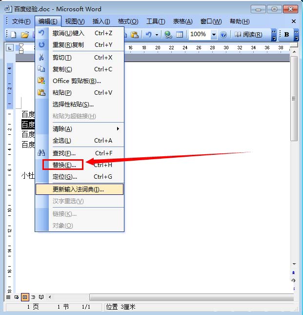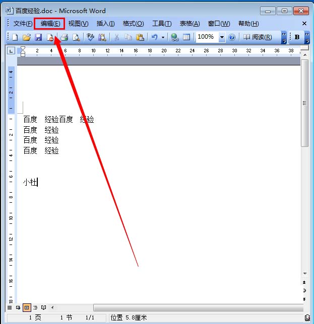 2、然后点击菜单栏上的“编辑” 如图