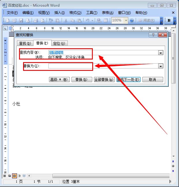 5、输入查找的内容和替换的内容之后,我们可以单独一个个的替换,也可以一次性全部替换 如图