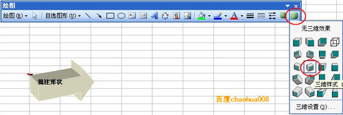先选中批注外边框,用鼠标点击“绘图”工具栏右端的“三维效果样式”按钮,从中选择一个模式后,批注就变成三维效果了。