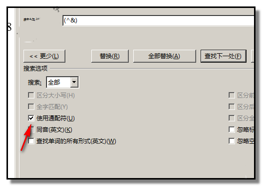 5、下方弹出扩展对话框;在“使用通配符”这里打上对勾