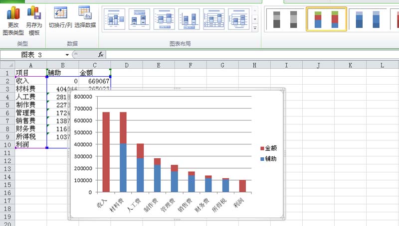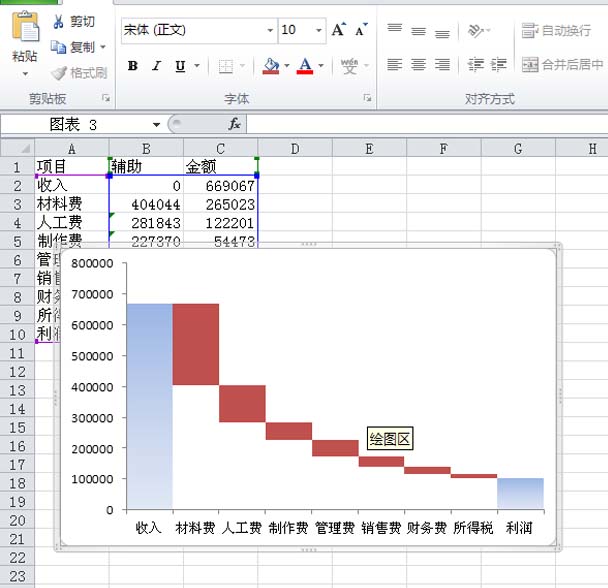10、这样一个瀑布图表就制作完成了,执行文件-保存命令,在弹出的对话框中输入名称,保存在一合适的位置上即可。