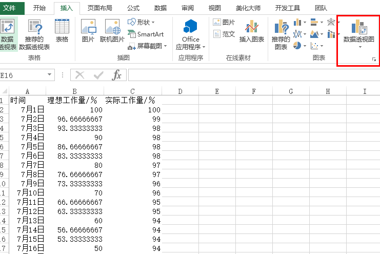 2、Excel画图可以直接选中部分表格插入图表,这里讲最简洁、明了的方法:数据透视图。插入-数据透视图即可。选中整个表格中有效数据部分,点击数据透视图,按照默认选择即可,如下图,点击确定。