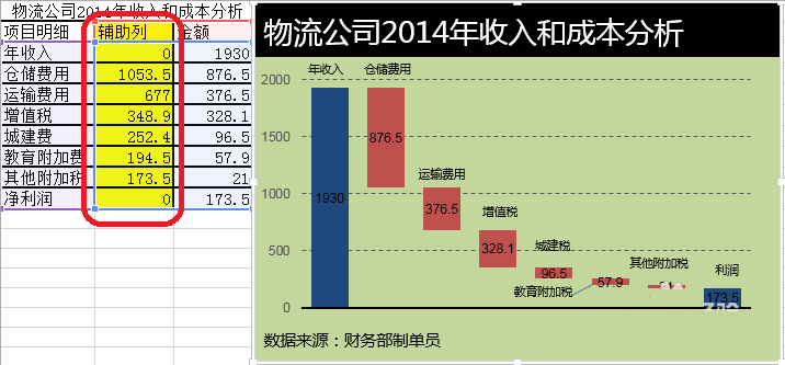 excel表格总有一年的收入和成分数据,为了表示落差,想要以瀑布图形式展示出来,下面我们就来看看详细的教程。