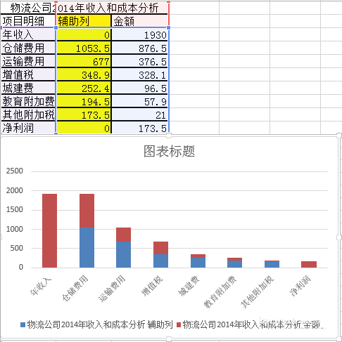 运输费用(辅助列)677=仓储费用(辅助列)1053.5-运输费用376.5