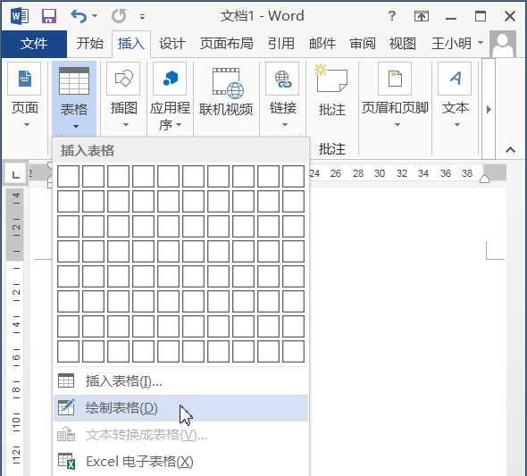 1、单击“插入”选项卡;单击“表格”组中的“表格”按钮;在弹出的下拉列表中选择“绘制表格”选项。