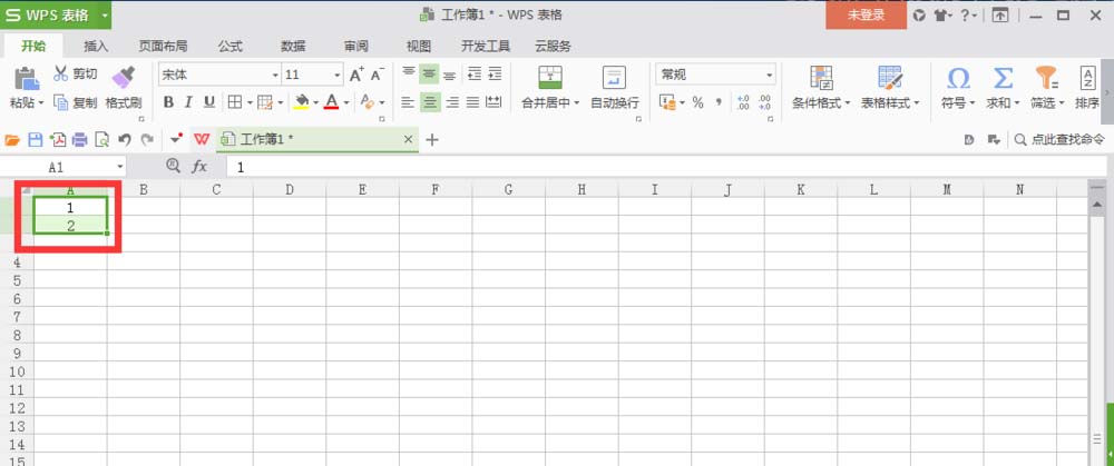 1、输入第一列。打开表格,在矩阵的第一列(A1和A2)输入1和2,确定A列,然后竖向填充10个单元格,如图: