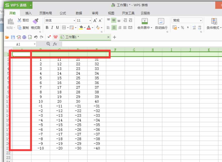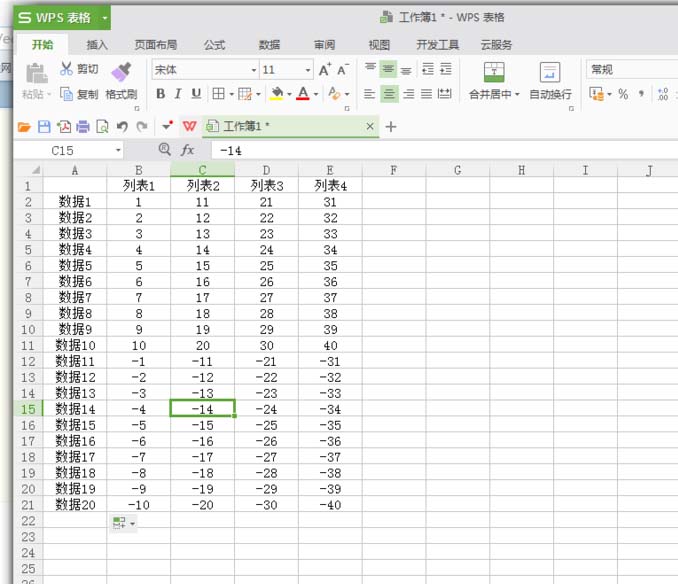 4、矩阵数据完成。填充之后简单的4列数字矩阵就完成了,接下来在列表中输入负数或其他数据,进行排列。如图: