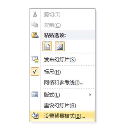1、首先启动ppt2010,新建一个文档,右键单击从下拉菜单中选择设置背景格式选项,设置橄榄色填充。