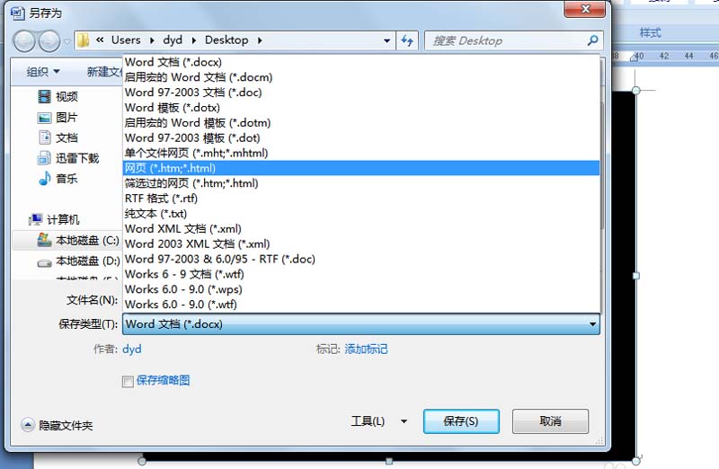 4、在弹出的另存为对话框中设置保存类型为网页(htm、html)格式,点击保存。