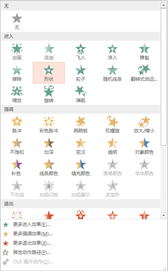 2、单击【动画】选项卡【动画】组中的【其他】按钮 ,在弹出的下拉列表的【进入】区域 中选择【形状】选项。
