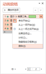 6、在【动画窗格】列表中单击第 1 个形状,并删除第 1 个形状的效果。