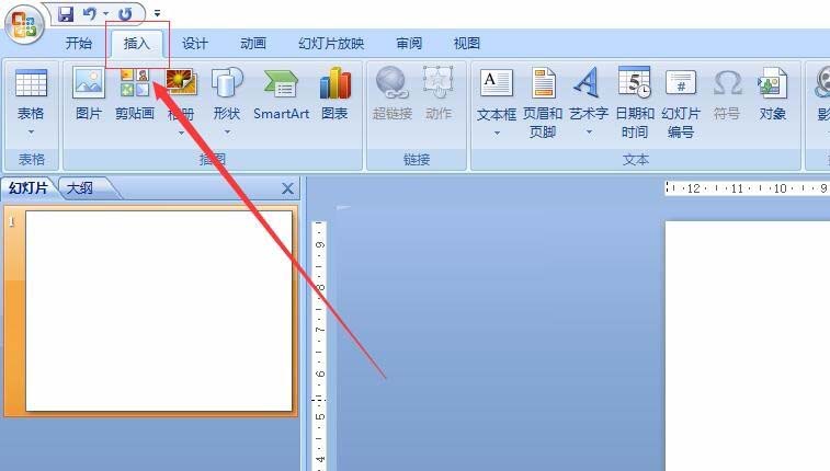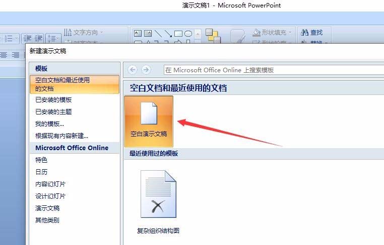 1、首先,我们打开Microsoft Office PowerPoint 2007,新建一个空白文档,如图所示: