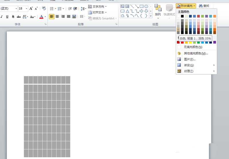 2、调整表格的大小,执行格式菜单,设置形状填充为灰色。