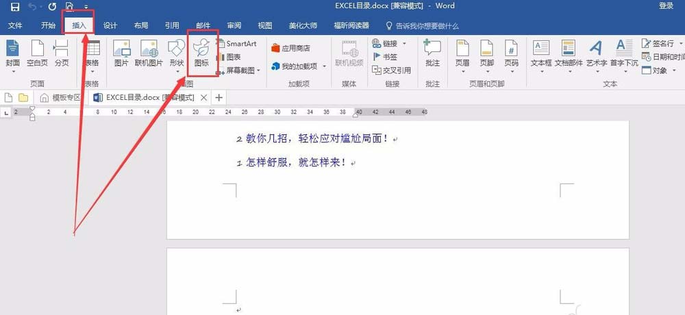 2、依次点击“工具栏”、“插入”,可以发现在形状右侧增加了一个新功能“图标”,可以非常方便的导入一些常用小图标。