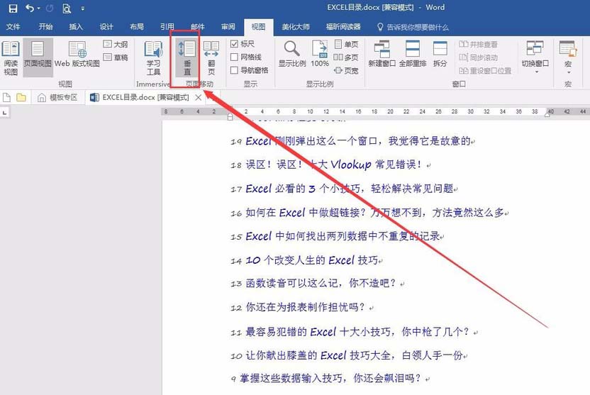 4、在视图中增加了“垂直”和“翻页”选项,可以自由切换页面视图为横向或者纵向显示。