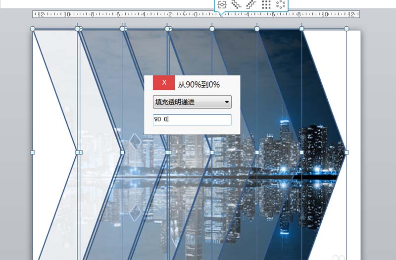 6、设置角度为90-0,点击关闭按钮,执行格式-形状轮廓命令,设置无轮廓,这样拖影封面制作完成。