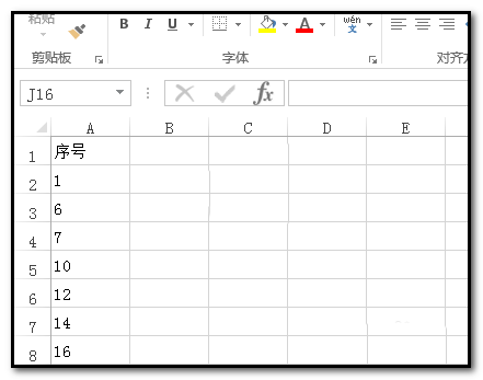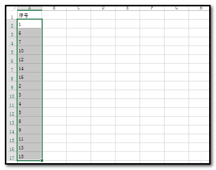 4、可以看到,现在序号虽然是补上了,但不是按照顺序来排列。那么,我们还要进行下面的操作。选中A2:A17