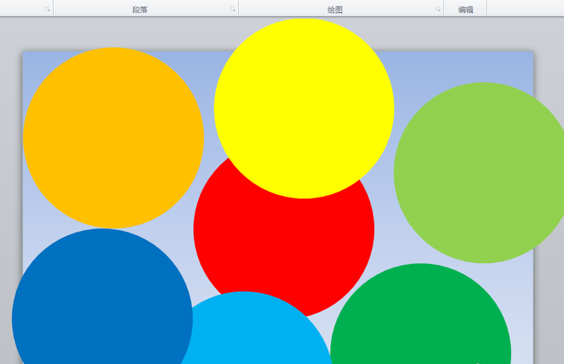 3、设置形状轮廓为无轮廓,填充颜色为红色,依次复制六个正圆,并分别设置不同的颜色。