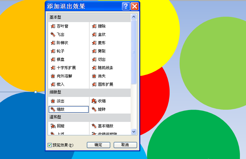 4、依次选择不同的圆,执行动画-添加动画命令,设置1-6个圆为退出里的缩放动画。