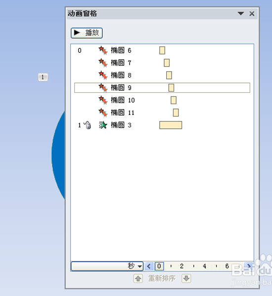 5、最后一个设置为进入里圆形扩展动画,接着调出动画窗格。
