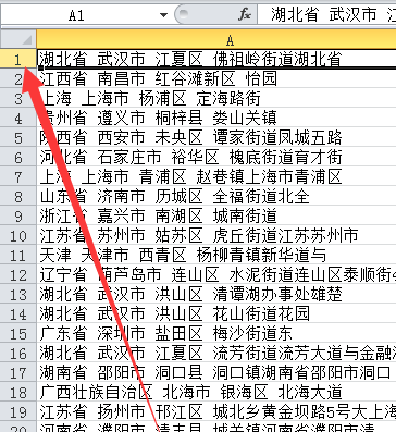 2、我们可以看出,目前地址是在A列,起始地址在A1表格,鼠标左键单击此处1