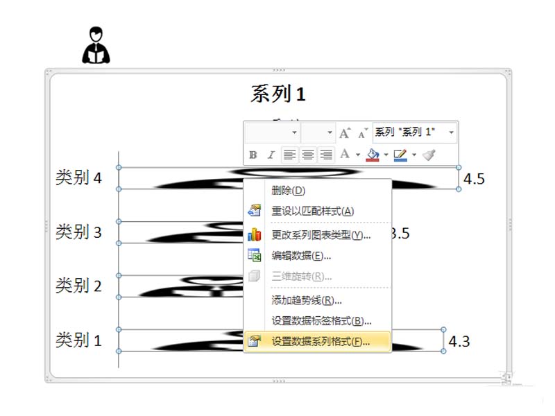 5、右键单击图表选择设置数据系列格式选项,接着弹出对话框。