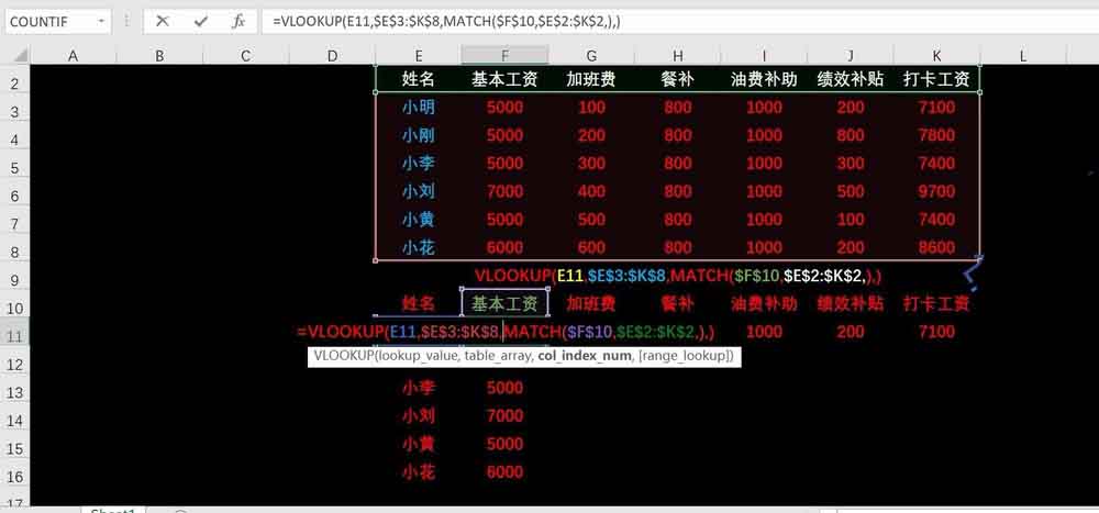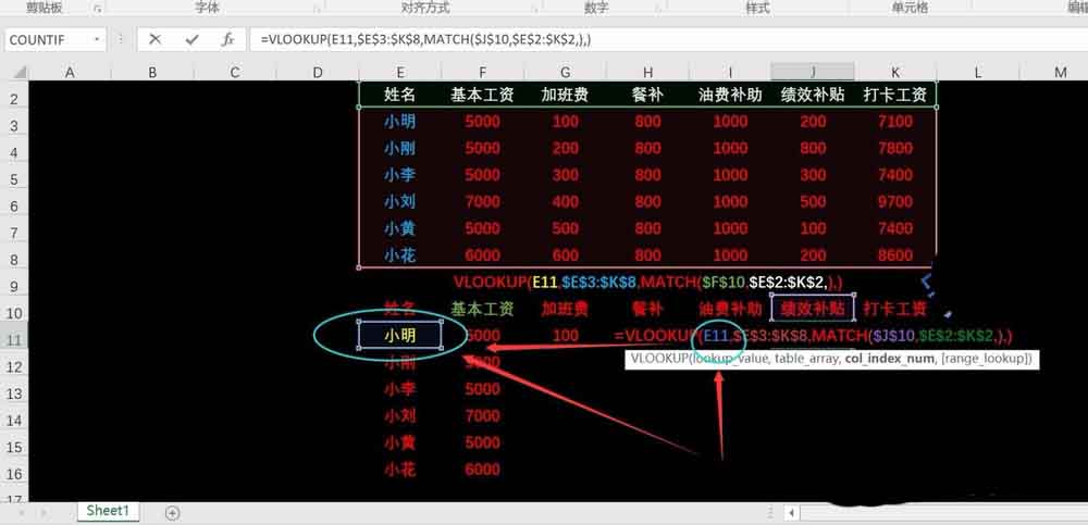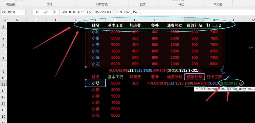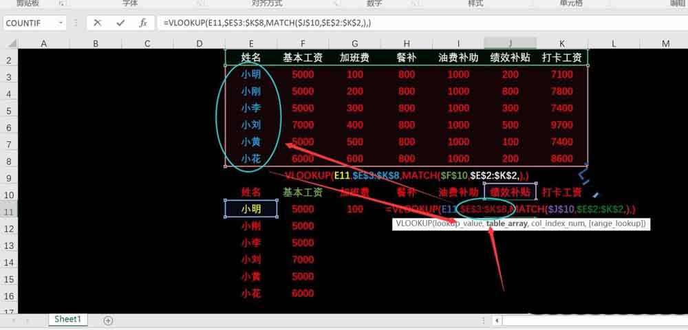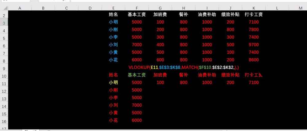 4、$E$3:$K$8, 这个在表格中代表的是,数据源 :数据源中所有姓名!