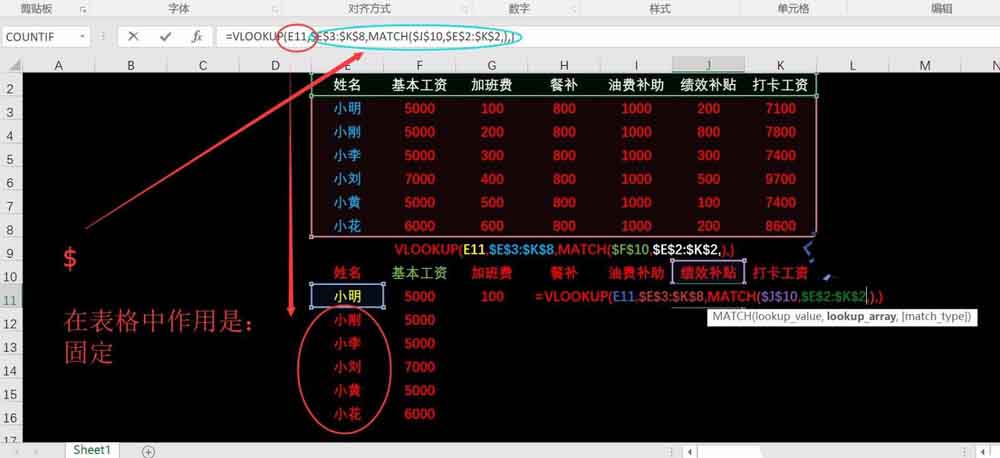 2、公式里面为什么有 【$】 这个符号,因为它在公式中起到的作用是 【固定】!方便下拉数据,而选择的数据区域固定不变~