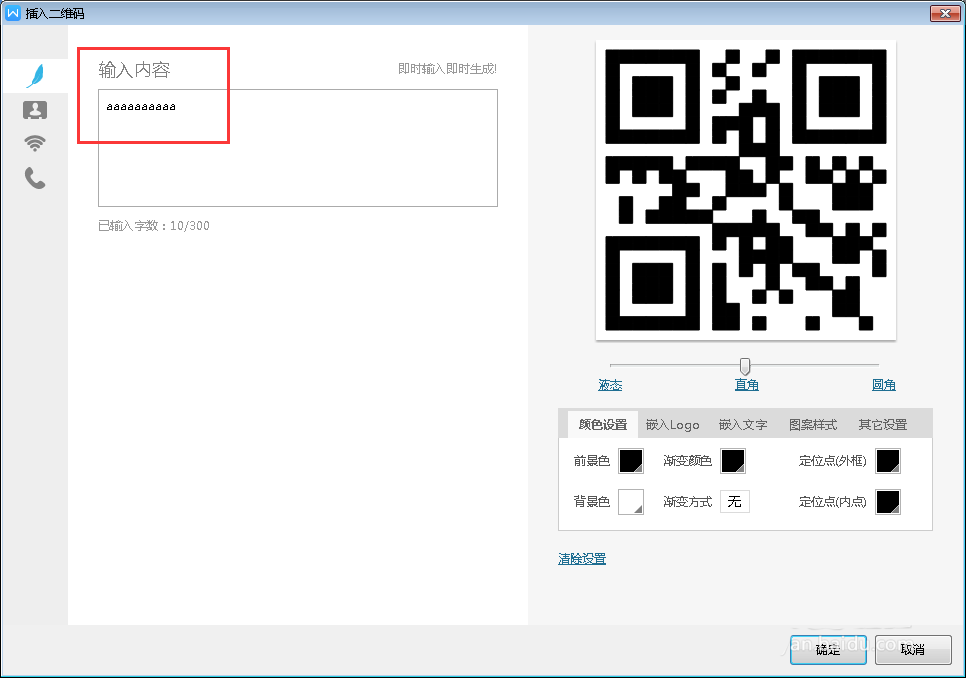 5、在弹出的窗体中,输入二维码所需要包含的内容如下图所示