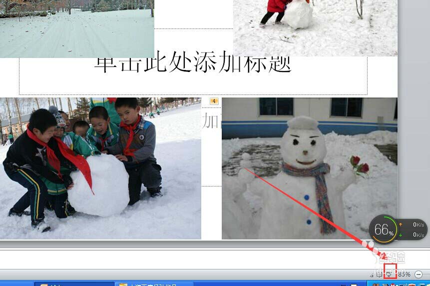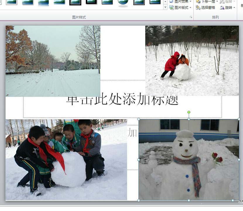 3、插入好要显示的图片,并调整图片位置的大小,如下图。调整图片位置是为了美观,可以根据个人喜好而定,而不能一概而论。小编定义如下图的四张图片为四宫格的。