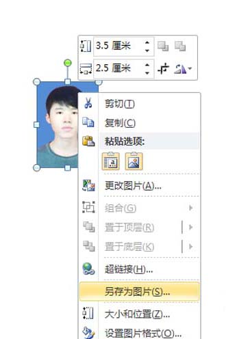 6、选择照片,右键单击从下拉菜单中选择复制命令,粘贴到ppt中,接着执行另存为图片命令即可。