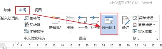 若批注内容隐藏了,想再显示出来,可以在“审阅”选项卡,“批注”组单击“显示批注”(这时该按钮处于为选中状态)。