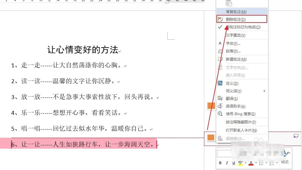 在批注上右击,然后在打开快捷菜单中选择“删除批注”。