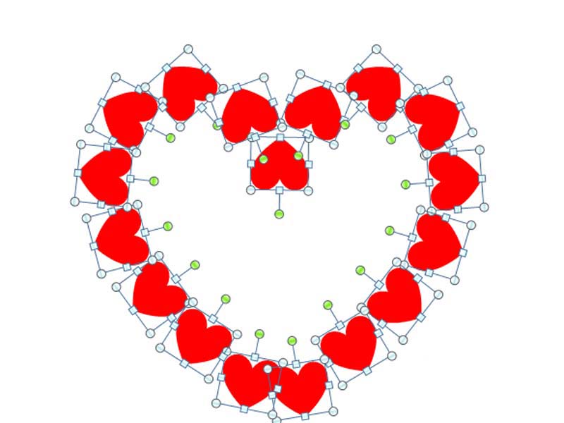 6、选择心形连续复制16个,并再次执行插入心形命令,插入一个大心形。