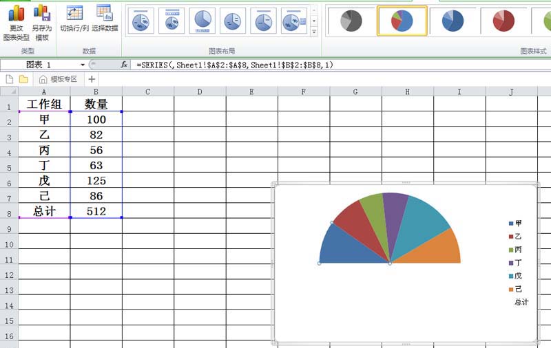 以上就是excel制作半圆形饼图的教程,希望大家喜欢, 请继续关注脚本之家。