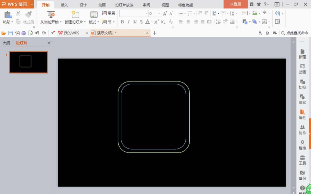 新建一个16:9的空白文档,选择设计选项,文档颜色填充为黑色,选择插入选项,找到形状图标下方的圆角矩形,绘制白色圆角矩形,鼠标右键复制,在工具栏的左上方会出现一个选择性黏贴按钮,随意选择一种类型,点击确定,就会将刚刚设置的圆角矩形转化为一张整体图片,只有在转换的图片中才能更改图片的透明度,选中图形内部区域,这个图形将会变成空心图形。