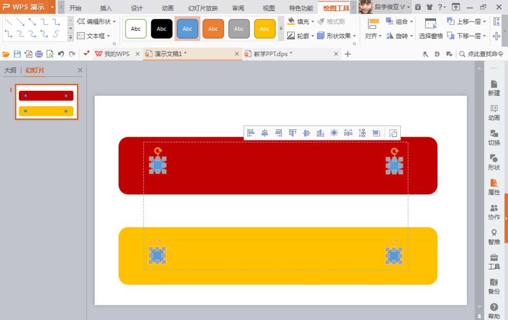 3、按下ctrl键可自动增加一个圆角矩形图案,鼠标右键可填充颜色为黄色。如图