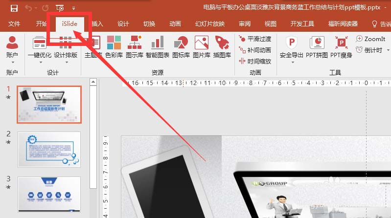 4、打开PPT软件之后我们就可以看到在菜单栏多了一个菜单【islide】