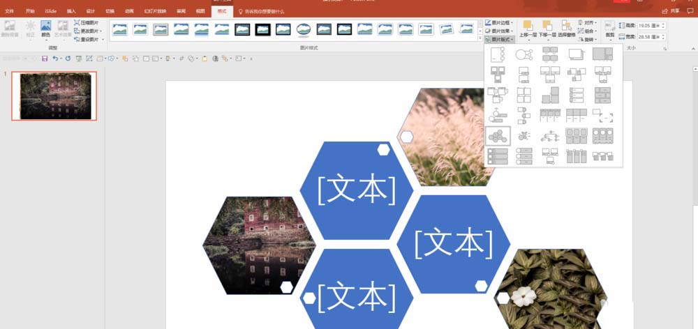 其实PPT有自带图片排版工具,还很贴心的预留了文本的位置。选中要排版的图片【图片工具】—【格式】—【图片版式】,office提供了30种版式供用户选择。