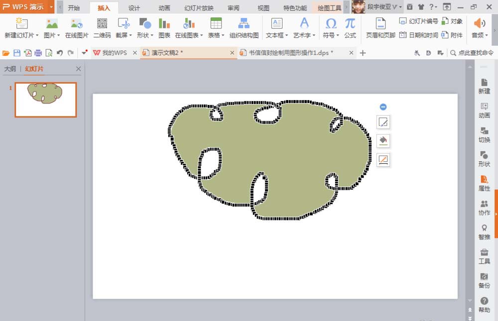 8、如果觉得图片不够美观,可再次选择S自由曲线形状,再次绘制形状,按下鼠标左键点击一下出现一个顶点,再次点击一下出现下一个顶点,不断的按下鼠标左键点击,就可绘制成由平滑曲线组成的图形了。