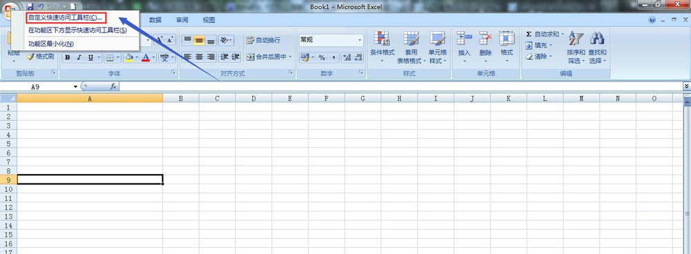 1、首先,打开Excel 2007软件,然后在表格的最左上角有一个office按钮,然后鼠标右键点击,如图。然后在弹出的对话框选择”自定义快速访问工具栏“