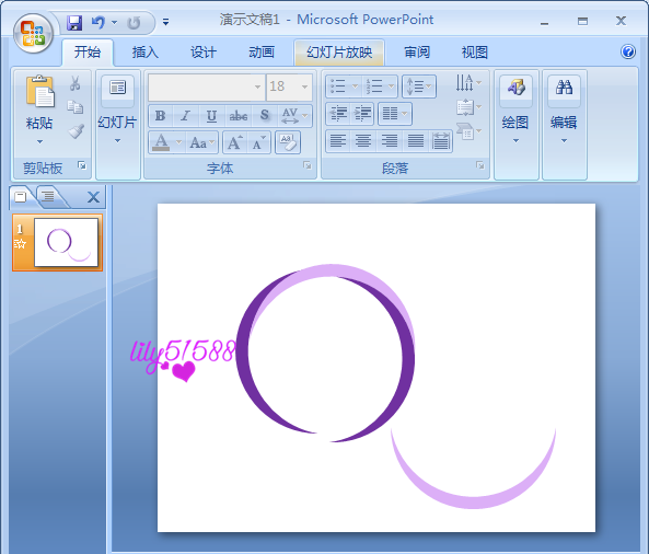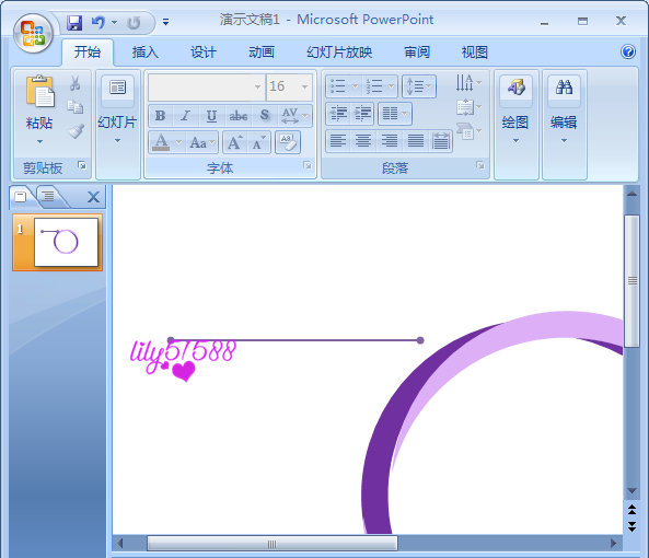 2、在文档上绘画出一个形状有点像月亮的样子,填充颜为紫色,如图所示;