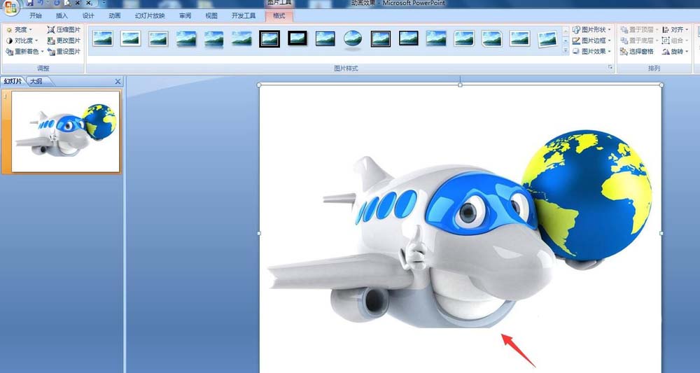 ppt中插入了一个飞机图片,想要给图片添加一个飞行的路径,该怎么添加呢?下面我们就来看看详细的教程。