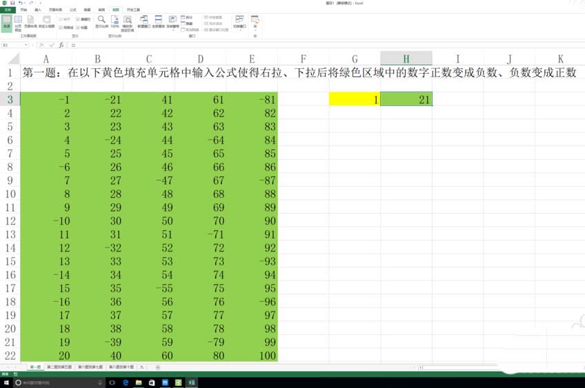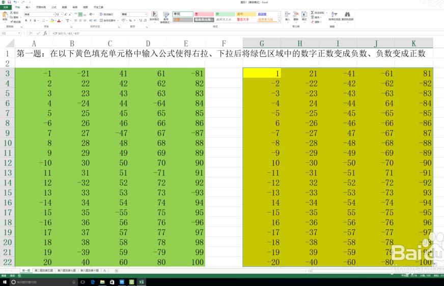 2、目的要求是将左边绿色区域的数值的正负值互换,如果是用手动调整,一个是操作麻烦,而是准确度不高,所以我们应该想其他的方法进行操作。