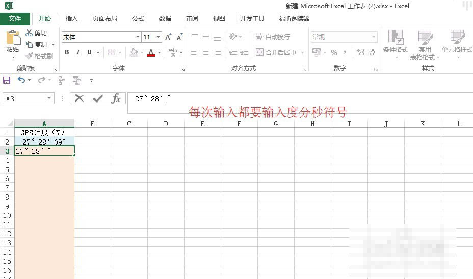 1、度分秒的输入方式是常规输入, °、′、" 分别占一个字符,就是每次都要出入°、′、",这种方法麻烦,但是确实有这样输好的材料,所以有必要展示。